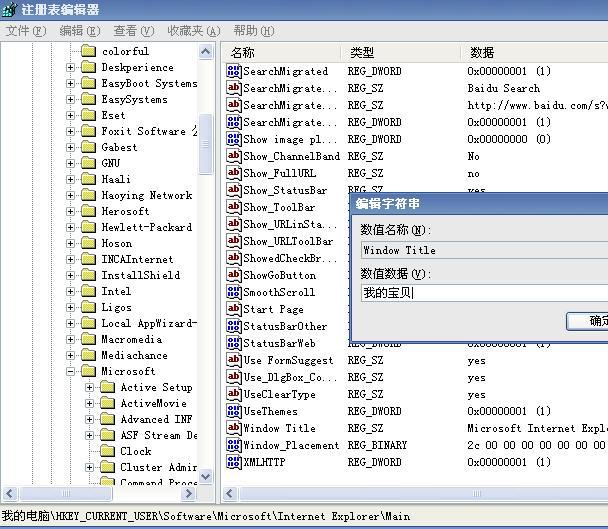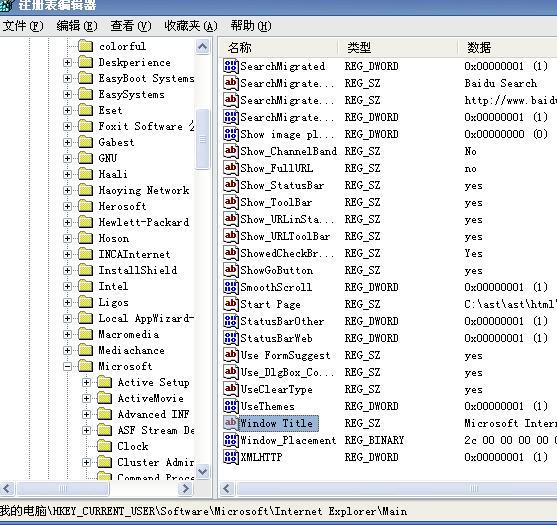 找到名为:WindowTitle的键值(如果没有就自己新建个)
