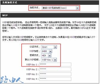 选择WEP安全方式后,出现如下界面。