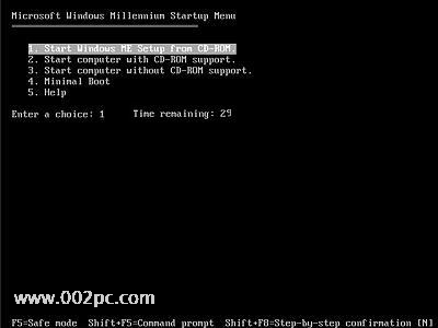 将光驱为第一启动盘后,把Windows Me安装光盘放入光驱中,重新启动电脑至出现如下图12