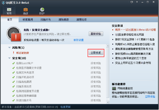 对于已经被修改的host文件,我们可以下载各种系统安全辅助工具进行修复,以QQ医生(点此下载)为例: