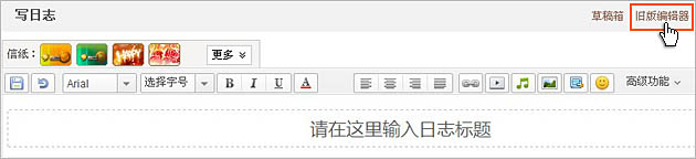 第二步:在日志的编辑页面,点击又上角“旧版编辑器”;