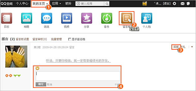 QQ空间中主人回复留言在哪里操作?